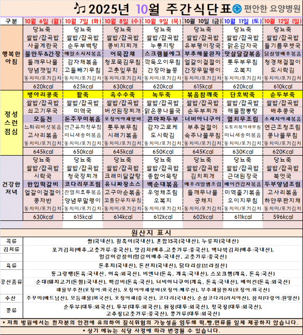 2025.10.6.(월)~2025.10.12.(일) 주간식단표