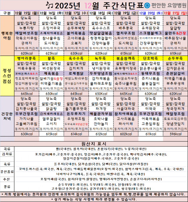 2025.12.15.(월)~2025.12.21.(일) 주간식단표