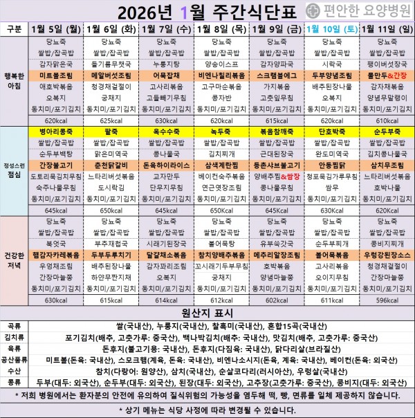 2026.1.5.(월)~2026.1.11.(일) 주간식단표