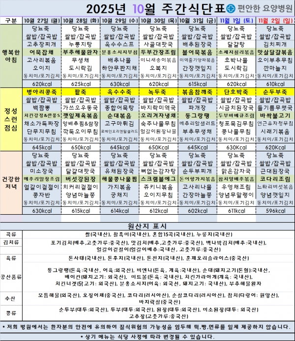 2025.10.27.(월)~2025.11.2.(일) 식단표