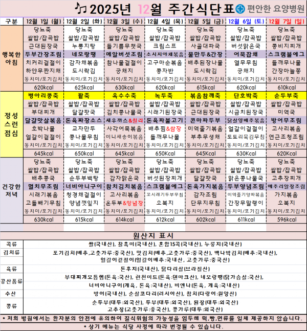 2025.12.01.(월)~2025.12.07.(일) 주간식단표